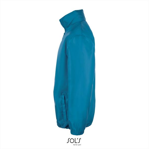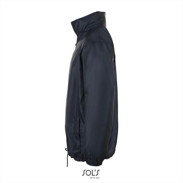 Waterdichte regenjas. Unisex windbreaker. Opvouwbare capuchon in kraag met rits. Aansnoerkoord in capuchon en zoom. Twee steekzakken met ritssluiting. Elastische manchetten. Winddicht. Waterafstotend.