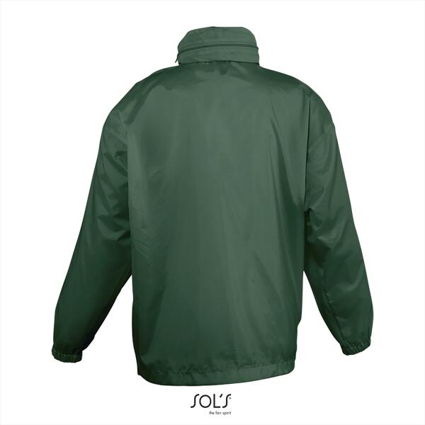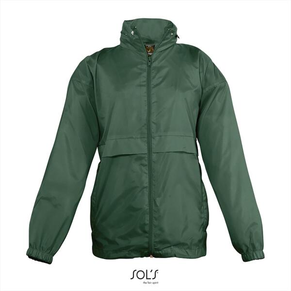 Waterdichte kinder windbreaker met kap. Opvouwbare capuchon in kraag. 2 steekzakken met rits. Aansnoerkoord in zoom. Elastische manchetten. Ventilatiegaten. Opvouwbaar in zakje dat met een elastiek aan de taille gedragen kan worden. Waterafstotend. Winddicht.