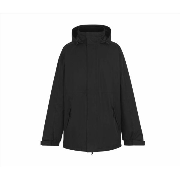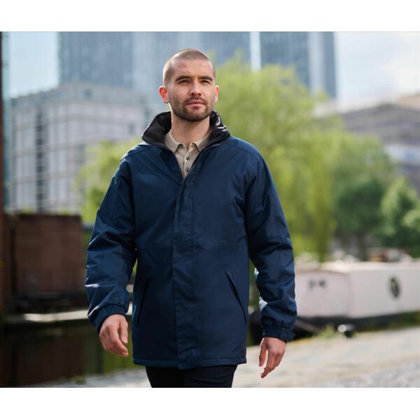 Windproof. Quilted polyester lining. Recycled Thermoguard insulation. Taped seams. Longer length parka jacket. Concealed hood with adjusters. Made in part from recycled polyester. Windproof. Quilted polyester lining. Fleece lined collar. Recycled Thermoguard insulation. Taped seams. Longer length parka jacket. Concealed hood with adjusters. 2 way centre front zip. Stormflap with hook and loop fastening. Elasticated and adjustable cuffs. 2 zipped lower pockets. Inner security pocket. Zip entrance in lining for embroidery access. Made using recycled materials.